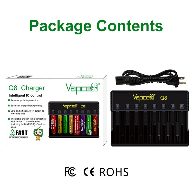 - 1 x Vapcell Q8 Charger (battery is not included)